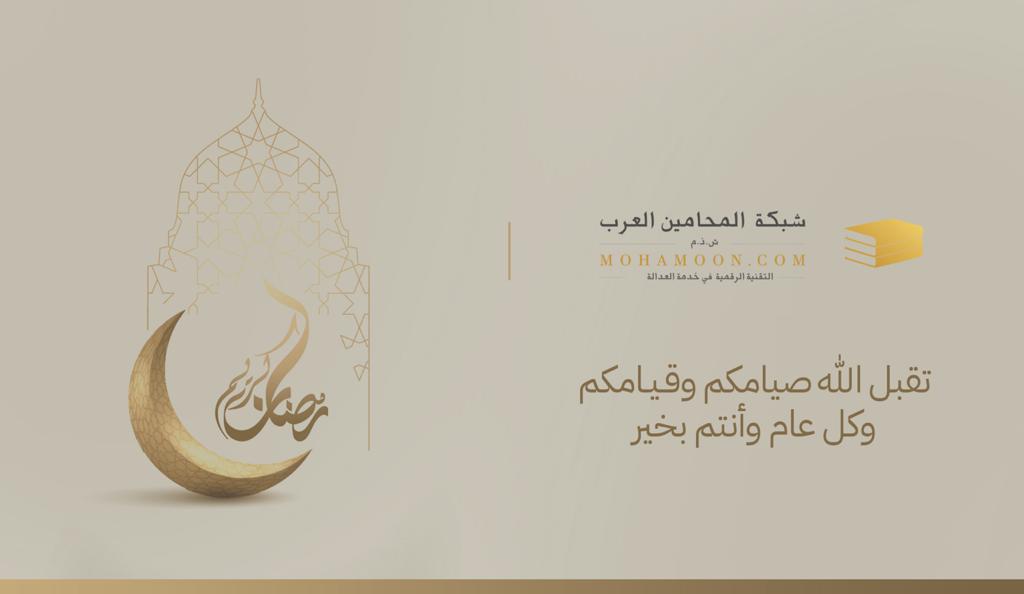 يطيب لـشبكة المحامين العرب أن تهنئ الأمة الإسلامية بحلول شهر رمضان الكريم أعاده الله على الجميع بالخير واليمن والبركات.