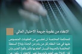 أوضحت النيابة العامة أن مبادرة الجاني في جريمة الاحتيال المالي بالإبلاغ عنها قبل اكتشافها أو قبل وقوع الضرر تتيح للمحكمة المختصة النظر في إعفائه من العقوبة المنصوص عليها في النظام.